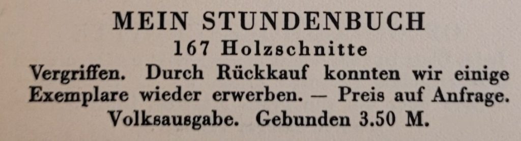 NOTE: the book title is Mein Stundenbuch (My Book of Hours) but the above advertisement reads Das Stundenbuch (The Book of Hours).
